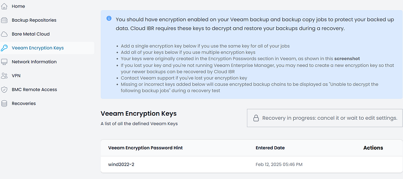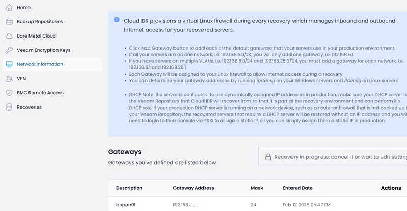 Setting up CloudIBR is incredibly easy. You just add the repository following super simple instructions — even for an old-school sysadmin like me who’s not exactly “cloud-native.” Then, you configure the backup encryption key and define some network settings, such as the IP of your on-prem gateway, subnets, etc. If needed, you can also whitelist your public IP for secure connections.