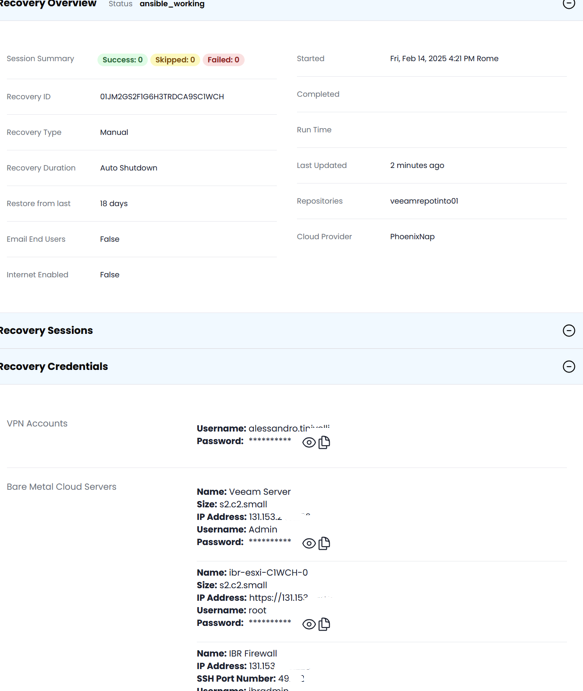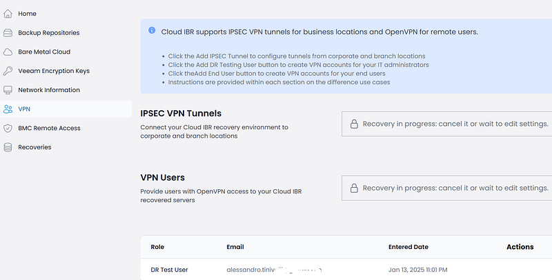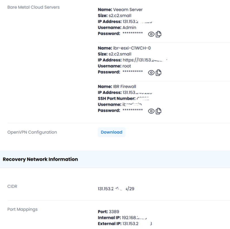 The first thing I did was connect to the “Veeam server.” I realized that CloudIBR automatically spins up a dedicated Veeam server, which starts up, pulls the backups from your cloud repository, and launches the VMs. Honestly, it’s faster to do than to explain!