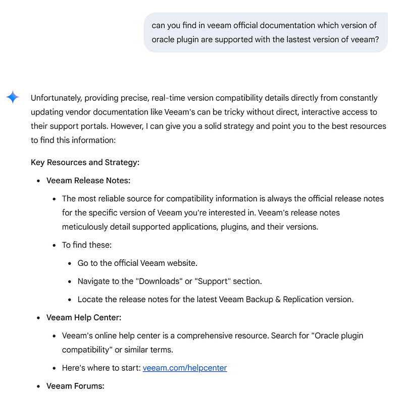 Veeam documentation is done to help you, but it’s **HUGE **like the portfolio, and often I’m struggling in finding the information I’m needing. Today I gave a try to the popular AI engines to be used for this search, instead of a traditional search engine.