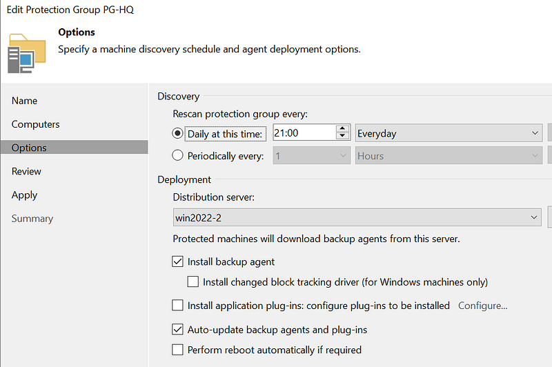 This script works with Veeam 12 and creates a Protection Group as Individual Computers with N machines, install *Agents (no CBT for Windows), does not install Plug-Ins, * does **not **start a rescan/installation, does **not **perform automatic reboot